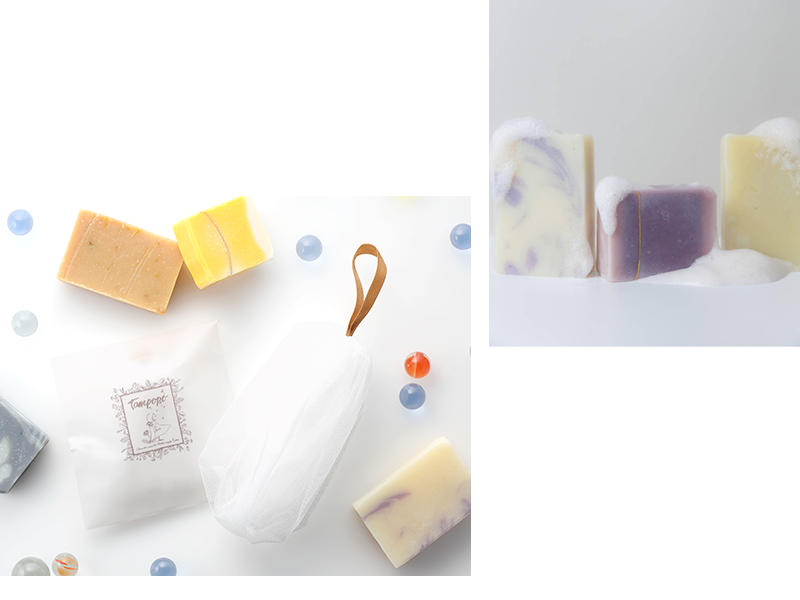 Tampopoせっけんは、食べられる素材からつくられる、肌にも自然にもやさしい石鹸です。